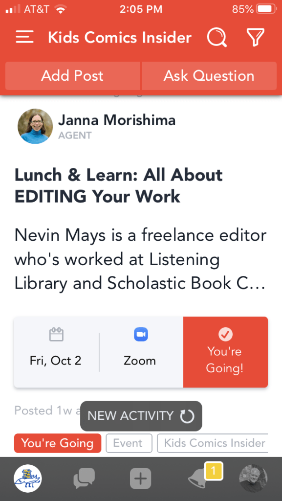 The network’s called Kid’s Comics Insider and it was started by my friend Janna Morishima. You can delve into her bio here, but what you need to know right now is that she’s a literary agent expert in children’s graphic novels and visual storytelling. Janna knows her stuff, has tons of energy and enjoys sharing her skill and passion to empower storytellers do their most personal and powerful work and find their audience.