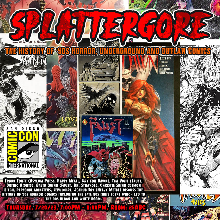 Frank Forte (ADG 800, Asylum Press, Heavy Metal, Cry for Dawn), Tim Vigil (Faust, 777: The Wrath, Gothic Nights), David Quinn (Faust, 777: The Wrath, Nightvision, Dr. Strange) discuss the history of 90s horror comics, including the late 80s indie scene which led to the 90s black and white boom. Celebrate the release of Faust: Love of The Damned Omnibus, shipping in signed limited edition from the Rebel Studios Kickstarter this summer and in a direct market edition co-published with Black Mask Studios in October!