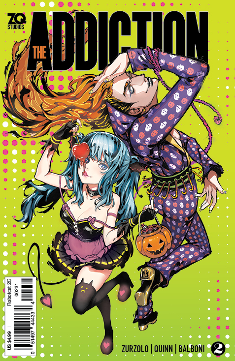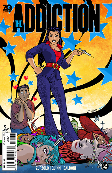 After selling out 5,000 digital copies in just over a half-hour, Vincent Zurzolo and David Quinn are proud to announce that The Addiction #2 is now on comic shop shelves! Collectors will get another exciting opportunity to pursue variant covers, as well, featuring work by Ryan Brown, Amanda Conner, RobotCat, and Andres Labrada!
